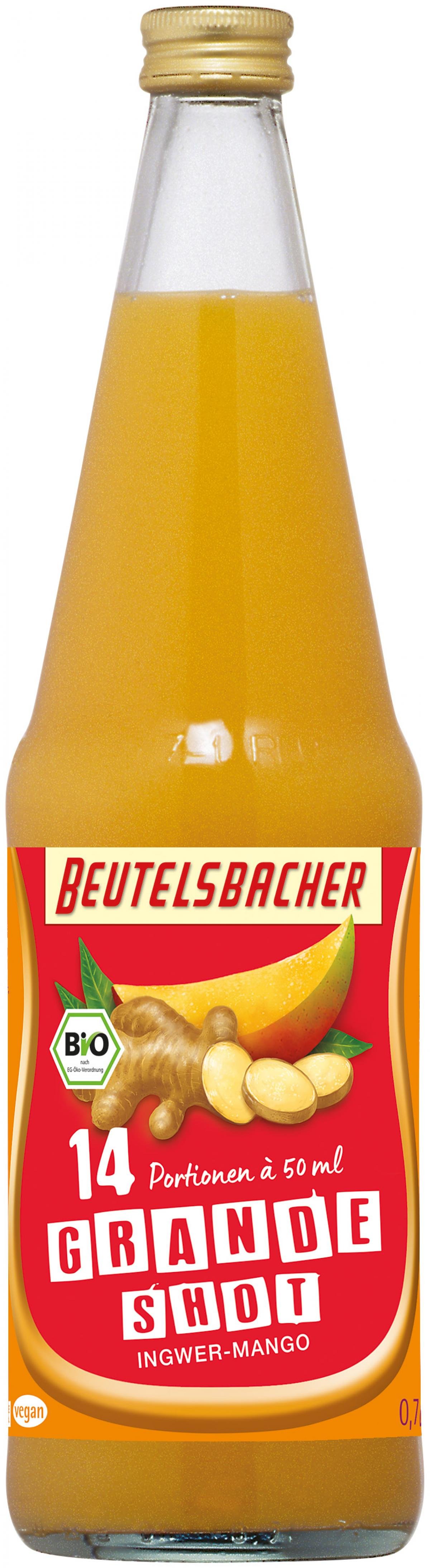 14 Ingwershots in einer Flasche - reich an fruchteigenem Vitamin C. Alle Zutaten sind bio. Ohne Gentechnik.