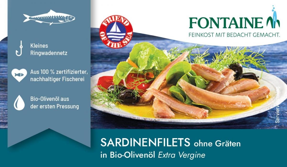 Die Schwarmfische werden auf kleinen Booten per Echolot geortet und dann mit großmaschigen Ringwadennetzen gefangen. So werden die Sardinen weniger gedrückt oder gequetscht; Jungfische können wieder nach draußen gelangen. Diese Vollkonserve enthält neben den Sardinen ausschließlich Meersalz und Bio-Olivenöl.