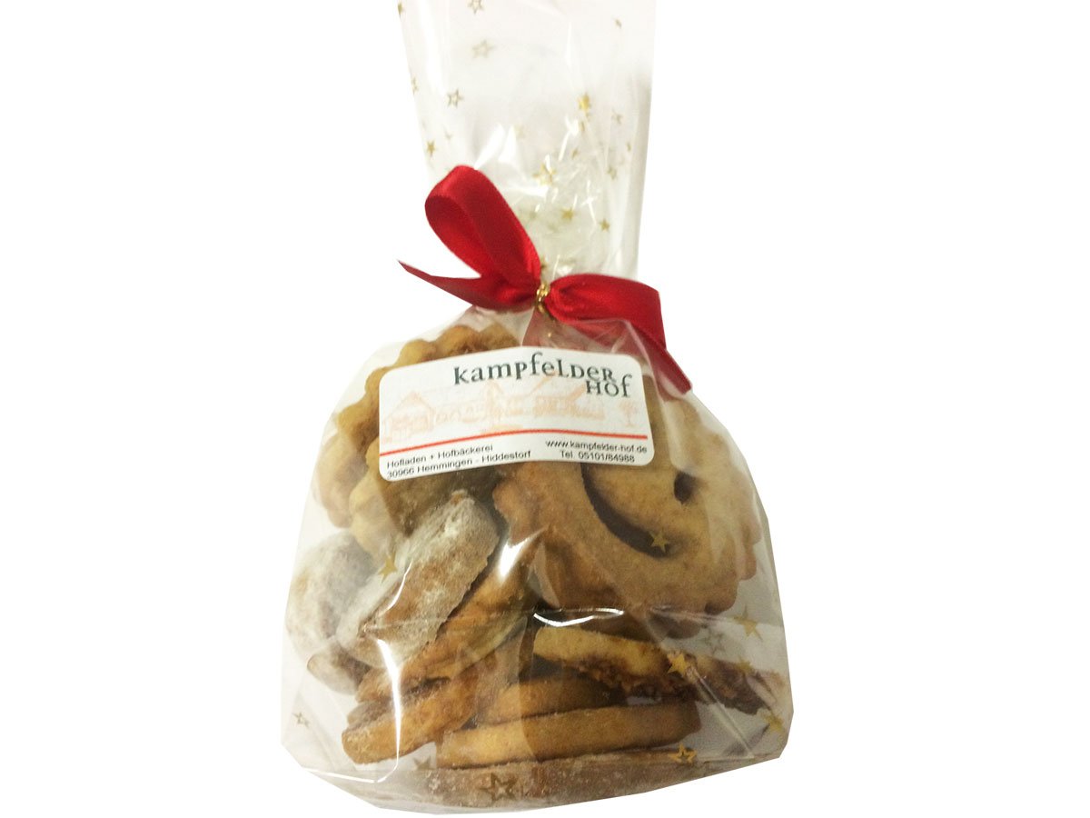 Besonderheit: Der Großteil des verarbeiteten Getreides stammt aus dem eigenen Bioland Anbau auf dem Kampfelder Hof. Das Mehl wird kurz vor der Verarbeitung und nach Bedarf gemahlen. Die eigens entwickelten Rezepte, werden nach alter Tradition und Handarbeit in der kleinen Hofbäckerei hergestellt.