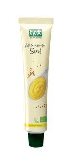 Der mittelscharfe Bio-Senf von Byodo schmeckt nicht nur zu Wurst und Käse, sondern verfeinert Dressings, Suppen sowie Fisch- und Fleischgerichte. Dank der praktischen Tube lässt er sich einfach portionieren.
