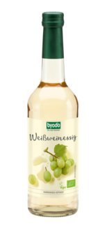 Der Byodo Weißweinessig wird aus feinem Tafelwein gewonnen und ist ein Multitalent in der Küche. Er wird nicht erhitzt.