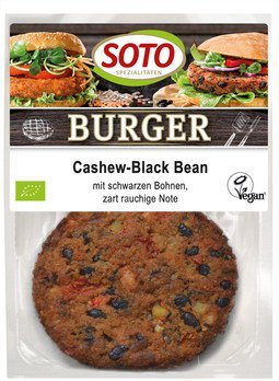 Unser Cashew-Black Bean Burger punktet mit seinem hohen Ballaststoffgehalt dank schwarzer Bohnen und Cashewkernen. Durch seine exzellente zart-rauchige Note ist er besonders herzhaft und eignet sich auch ideal zum Grillen.