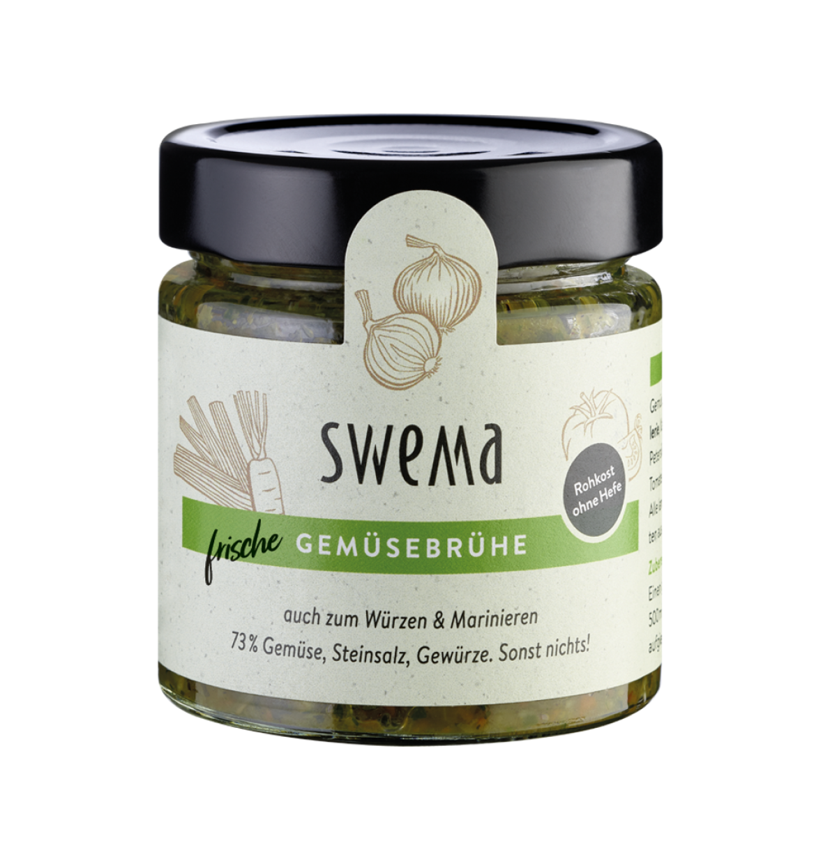 SweMa Frische Gemüsebrühe mit 73% rohem Gemüse, Steinsalz, Gewürze. Sonst nichts!