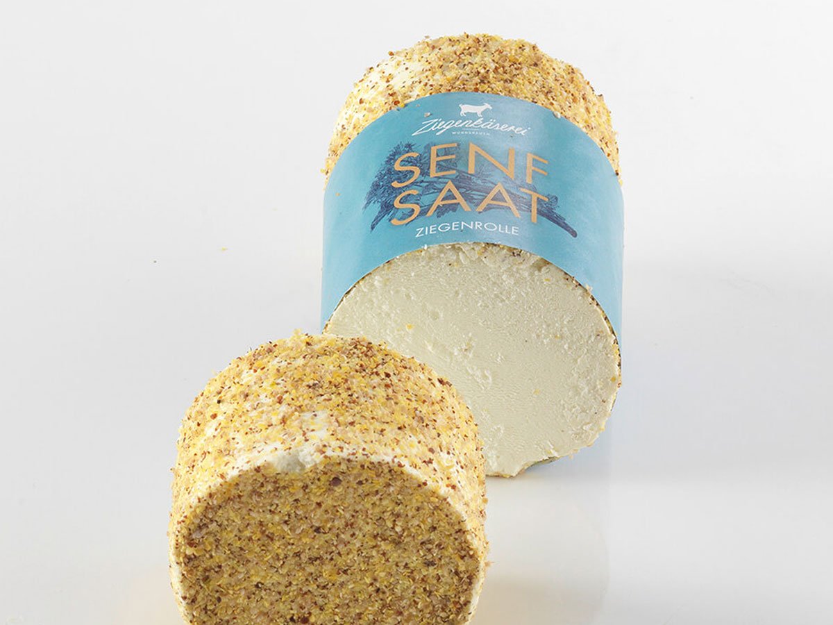 Spezialität der Familie Knöbel aus Würnsreuth. Unaufdringlich mildes Ziegenaroma mit einer Hülle von würziger pikanter Senfsaat verfeinert.