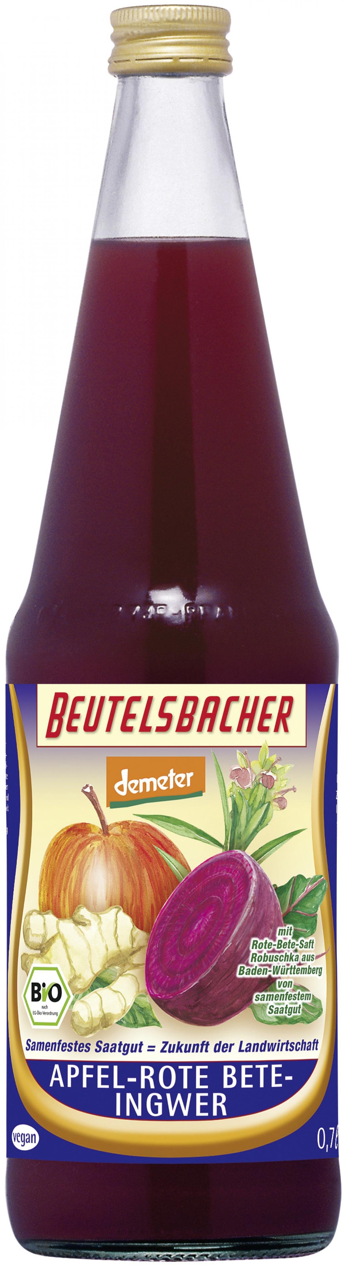 Aus biologisch-dynamischer Landwirtschaft Baden-Württembergs stammen die Äpfel und Rote Bete Robuschka für unser Rezept. Die Robuschka ist eine Rote Bete-Sorte aus samenfestem Saatgut. Naturtrüber Apfelsaft bringt den fruchtigen frischen Charakter und für die würzige Geschmacksnote dient Ingwer.